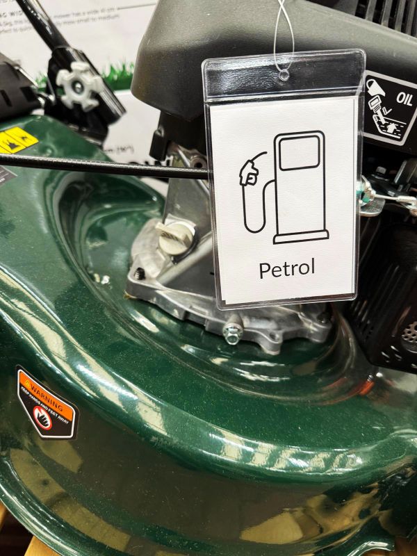 For customers, selecting the right garden machinery can be challenging, so make the essentials obvious. Tags that highlight key information are really helpful. In the case of lawnmowers, for example, the tag should include power source, cut width, run time, weight, or whether a mower is self-propelled. Using icons or quick-read bullet points helps people compare models at a glance.