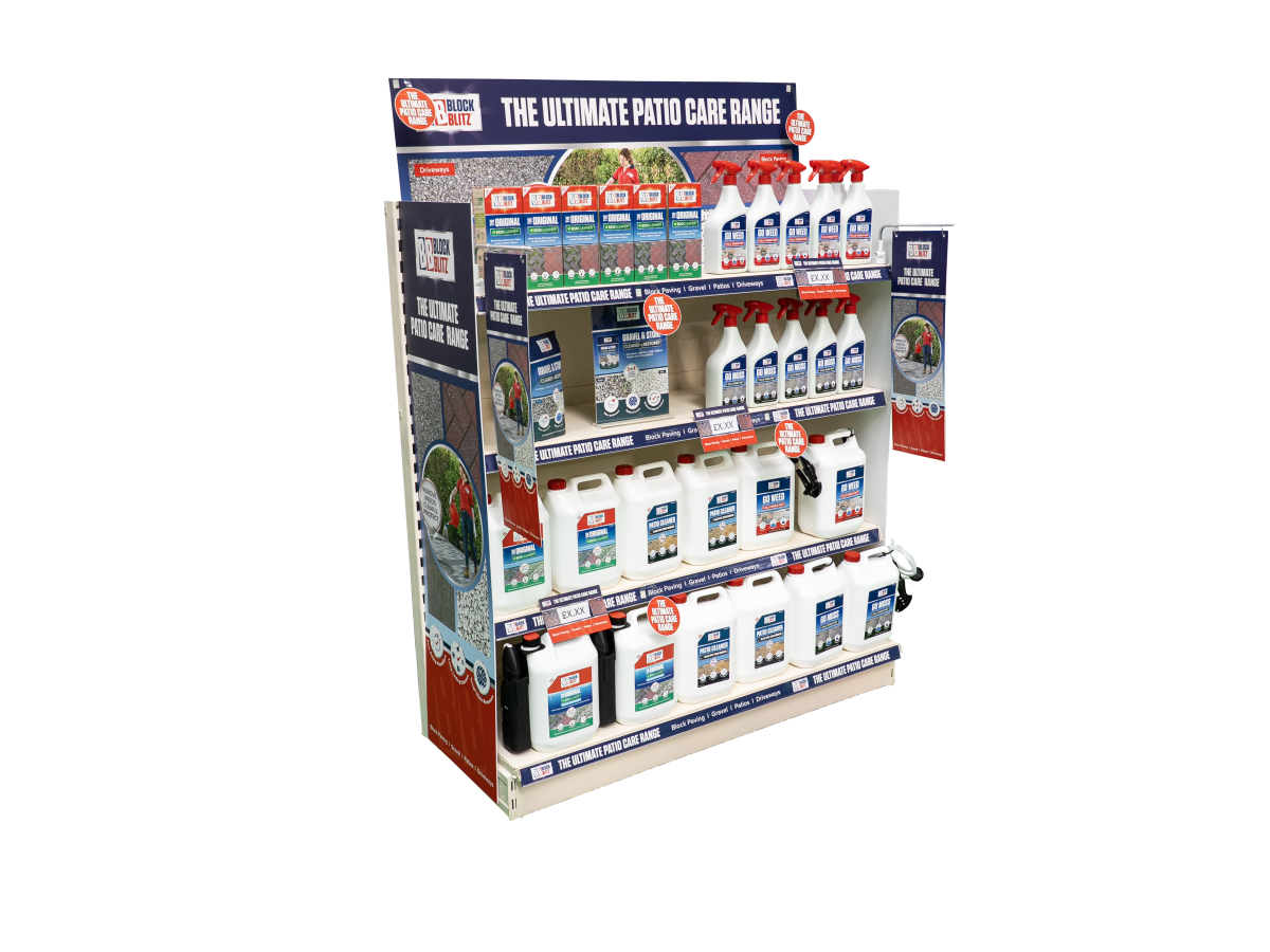 To complement the expanded range, Block Blitz® has undergone a packaging and point of sale refresh, refining its branding and colourways to ensure strong shelf presence and clear category positioning in-store. The updated look is designed to help garden centres merchandise with confidence, making it easier than ever for customers to find the right solution for their outdoor needs. This includes the option to utilise the Block Blitz® gondola end point of sale kit which has been created to maximise visibility on the shop floor.