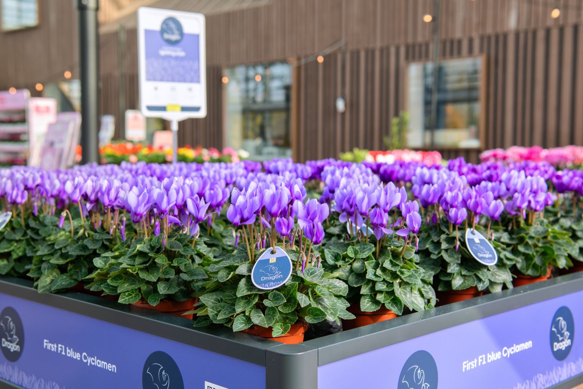 New on the market is the very first blue Cyclamen, Dragon: a stunning new color with excellent outdoor performance. The popular mini cyclamen series Verano, Carino, Picasso and Mini Winter also remain key highlights, standing out for their exceptional quality.