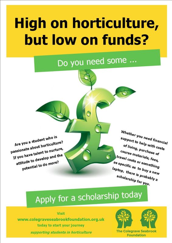You can apply for a Smart Garden Products Student Scholarship, or one of the other available scholarships, up until the 31st January 2024 at https://colegraveseabrookfoundation.org.uk